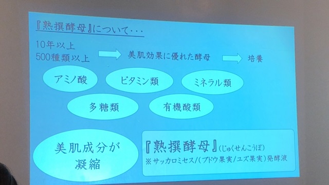 つまり、「熟撰酵母」には、酵母が放出したそれらの美肌成分が凝縮されているのです。